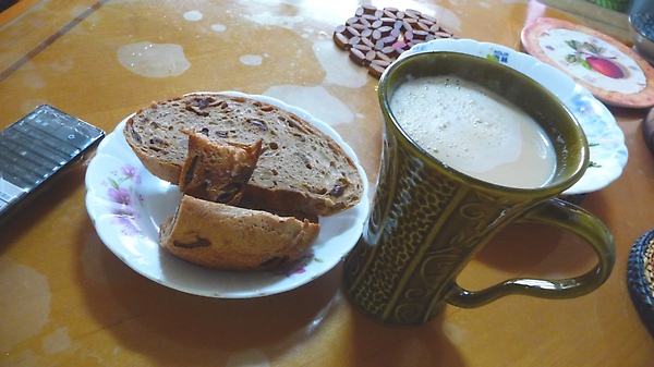 老媽不愛吃麵包, 因為偏乾, 每吃ㄧ口就得配上一大口茶水