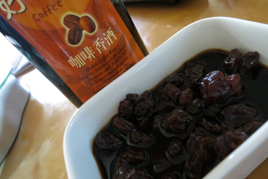 葡萄乾(1 把多) , 泡上咖啡香酒, 約1小時, 濾乾