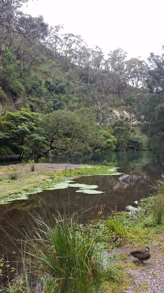 起身去附近的鐘乳石洞的溪流散步